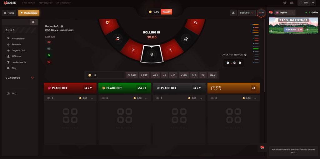 • Types of Bets: In CSGO roulette, players can bet on colors (often red, black, and green), numbers, or combinations. Each color and number represent different odds and potential payouts.