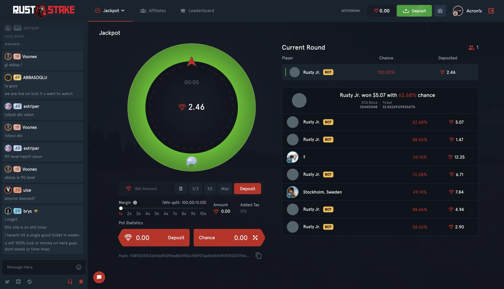 However, over time, Rust Stake has steadily gained popularity and now boasts consistent player engagement, even during non-peak hours. Despite its expanding community, it’s still relatively uncommon to come across high-stakes games like jackpot or coinflip on the platform.