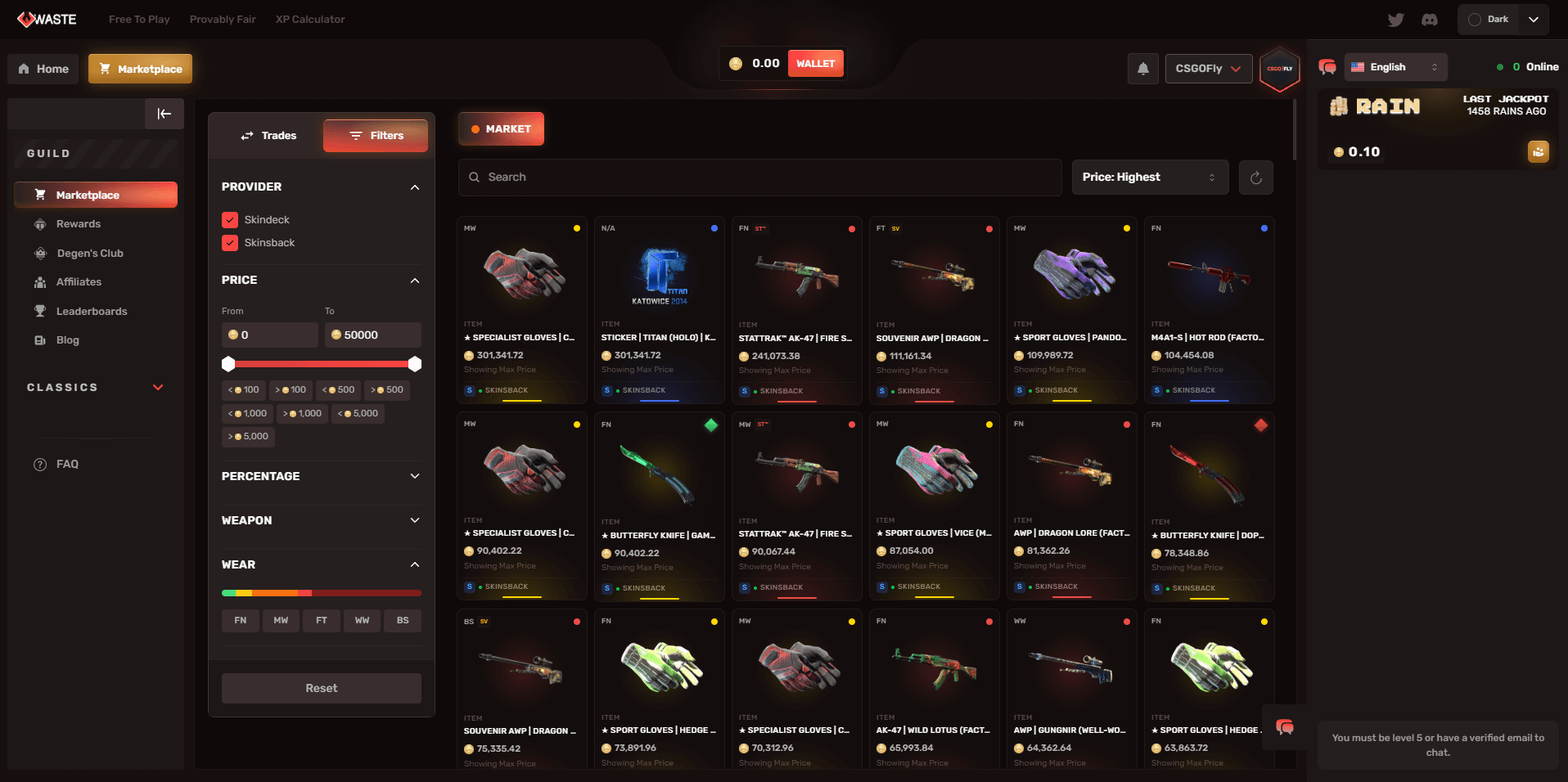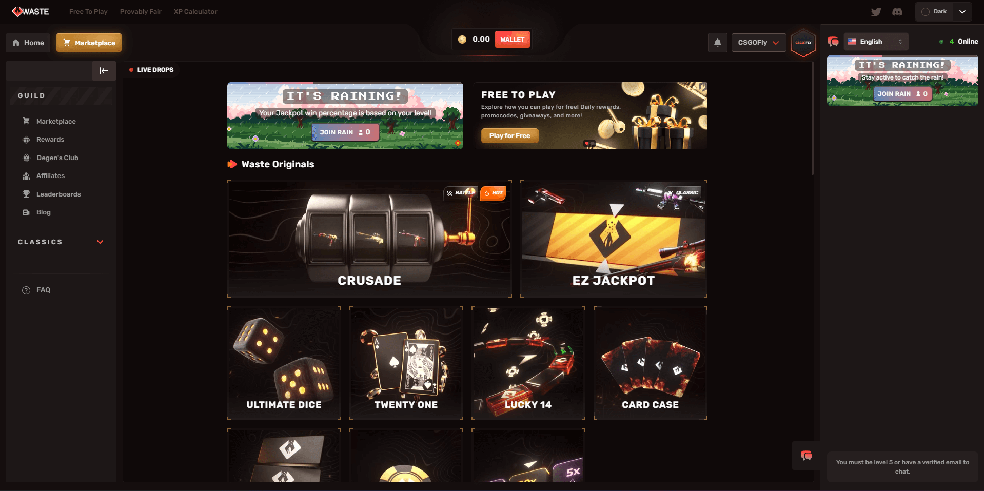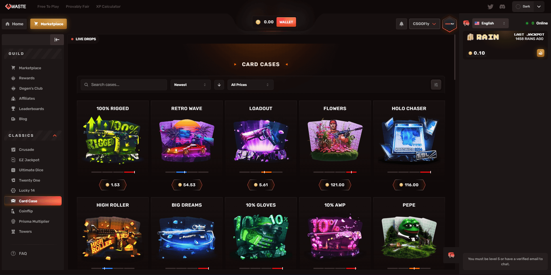 Waste.gg offers nine provably fair game modes, each with transparent house edges and verifiable outcomes.