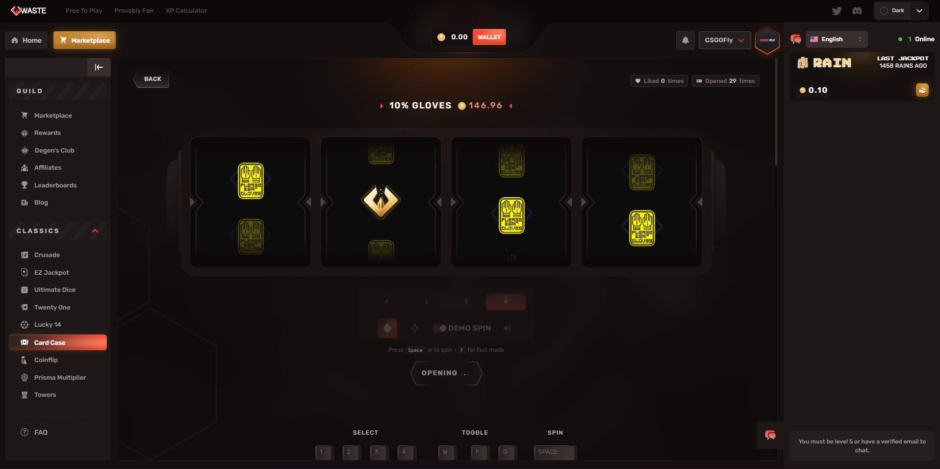 - Demo Spin — Preview case opening animations without spending